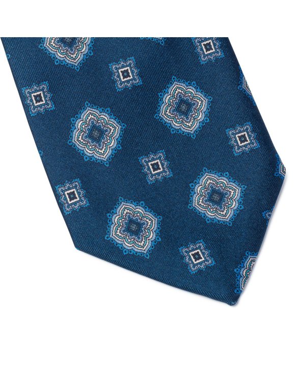 Granatowy krawat jedwabny wzór rozeta VAN THORN