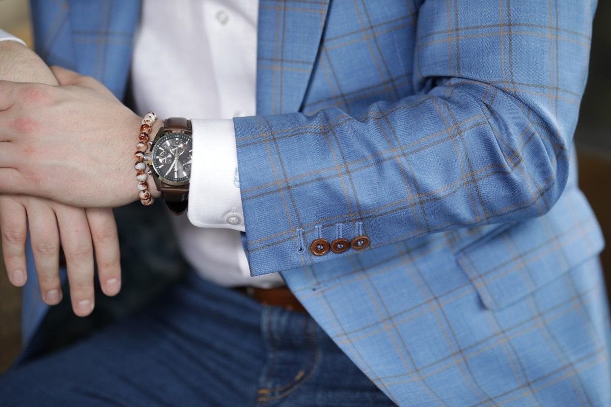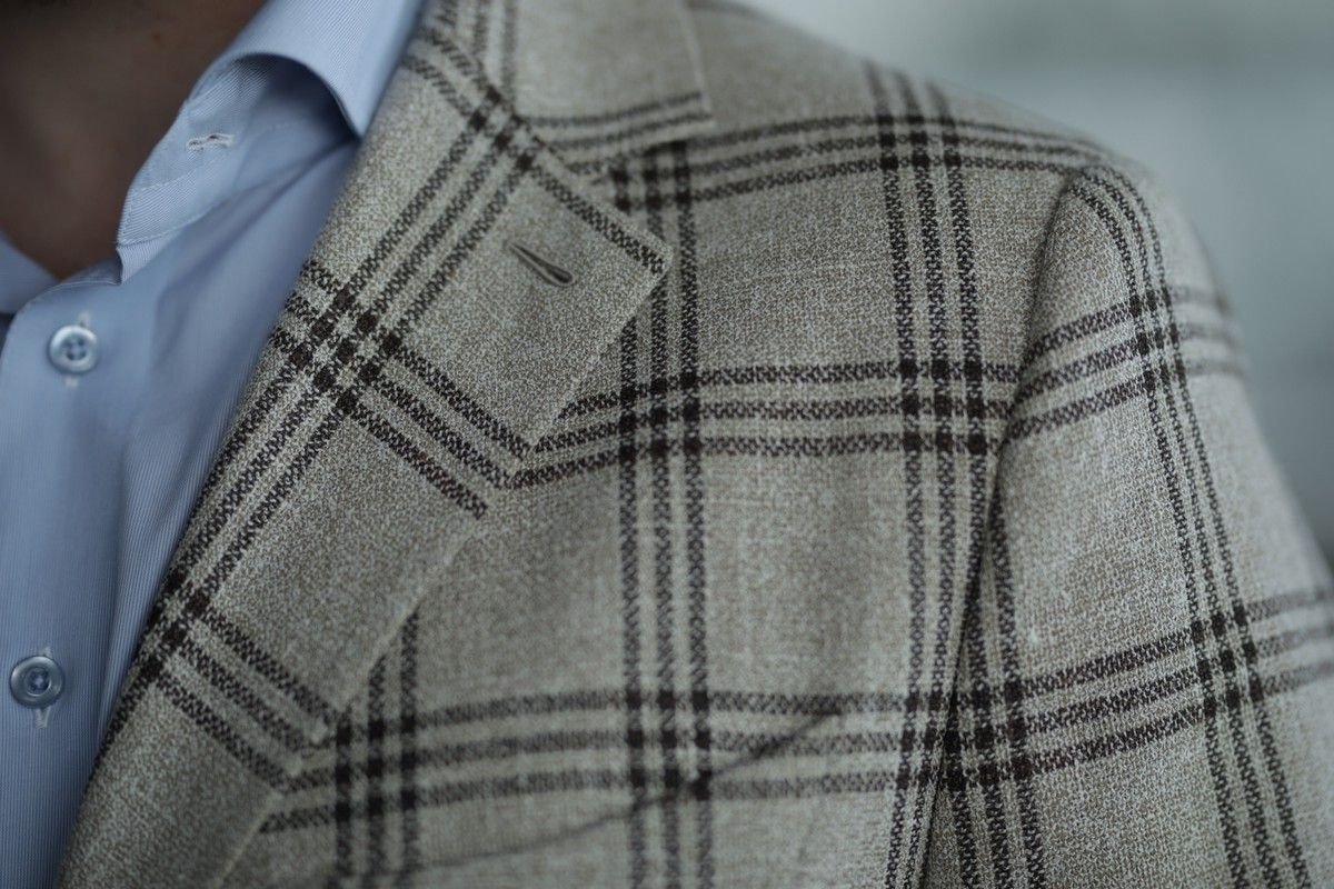 Rolą doradcy w salonie jest pomoc w wyborze odpowiedniej tkaniny, mając na uwadze przeznaczenie marynarki. Jeśli ma ona stanowić element letnich stylizacji, to najprawdopodobniej warto zwrócić uwagę na len lub wełnę w splocie fresco, jeśli jesiennej, to z chęcią zaproponujemy marynarkę tweedową, flanelową lub z wełny z kaszmirem.